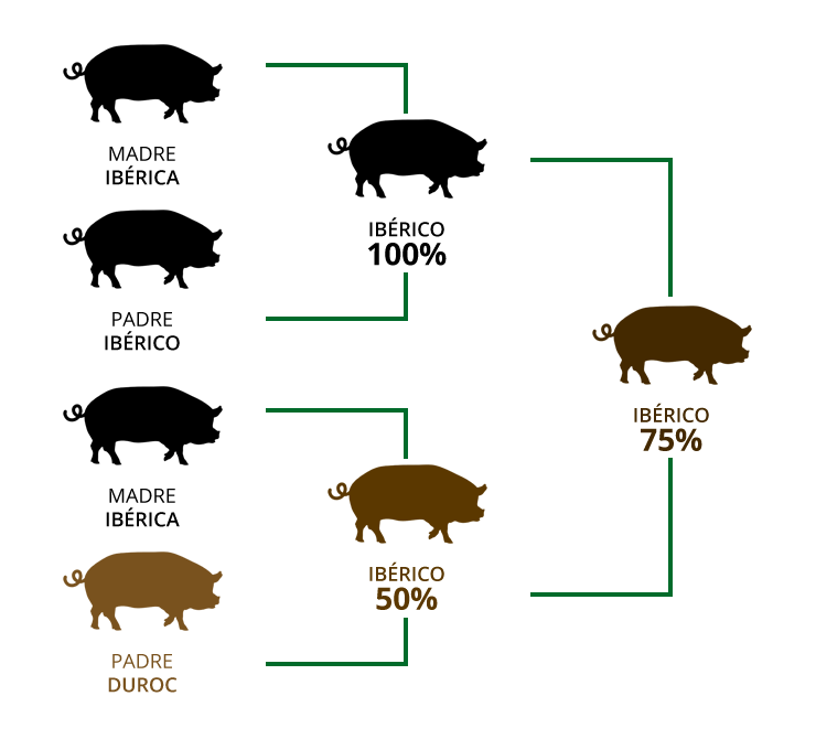 - Jamón 75% Ibérico: Un mestizaje sibarita, con madres ibéricas y padres mitad ibéricos, usualmente de la raza Duroc. ¡Sabor con carácter!